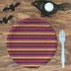 Des assiettes colorées en papier pour votre fête d'Halloween avec quelques rayures orange, rouge, violet et noir. © ArianeC Illustrations-Tous droits réservés