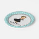 Plaques en papier baby shower pour bébé et compagnie avec adorable brune aux cheveux foncés bébé fille portant une robe noire fantaisie et des bijoux sur un arrière - plan en diamant bleu turquoise. Vous pouvez ajouter le texte de votre choix.