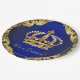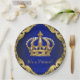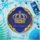 Plaques en papier baby shower Prince avec élégante couronne bleu et or sur un arrière - plan tourbillon bleu et or riche. Vous pouvez customiser avec le texte de votre choix dans le style de police que vous préférez. Vous pouvez déplacer la couronne au besoin.