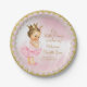 Plaques en papier baby shower Princess avec adorable petite fille princesse portant un joli tutu rose et un chapelet de perles sur un arrière - plan rose et or. Ces assiettes en papier baby shower princess ballerine mignonette peuvent être customisées avec du texte dans le style de police et la couleur de votre choix.