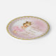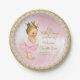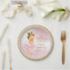 Plaques en papier baby shower Princess avec adorable petite princesse portant un joli tutu rose et un chapelet de perles sur un arrière - plan rose et or. Ces assiettes en papier baby shower princess ballerine mignonette peuvent être customisées avec du texte dans le style de police et la couleur de votre choix.
