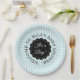 Personnalisez ce mignon bébé garçon, "c'est un garçon" baby shower petites assiettes de gâteau, avec des rayures en vichy bleues et des étiquettes noirs à l'intérieur qui disent, "C'est un garçon."