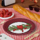 Montré dans la taille de 9 pouces avec une petite impression de buffle plaid avec des bouges de sapin et cardinal rouge perché au centre de cette assiette.