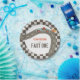 Fast One Race Car 1er Anniversaire plaque avec voiture de course bleu rétro.