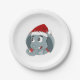 Plaque de papier avec illustration d'une tête de petit éléphant mignon avec casquette Père Noël, conception de vacances de Noël pour les enfants, illustré par Radka Kavalcova