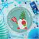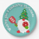 Plaque en papier de pickleball de Noël mignonne avec un nain de Noël heureux portant un casquette d'arbre de Noël et tenant une pagaie de pickleball. Texte personnalisable