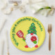 Plaque en papier de pickleball de Noël mignonne avec un nain de Noël heureux portant un casquette d'arbre de Noël et tenant une pagaie de pickleball. Texte personnalisable