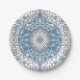 Les assiettes décoratives en papier pour la saison hivernale sont ornées d'un grand ornement d'inspiration vintage entouré de flocons de neige, de flocons et de tourbillons en bleu et gris.