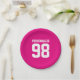 Plaques de papier-numéro de maillot rose néon personnalisées pour anniversaire. De belles fournitures de fête pour la fête d'anniversaire sportive à thème. Fournitures jetables pour dîner-fête imprimés pour l'anniversaire des enfants, club de sport, etc. Faites-les pour le football, le baseball, le softball, le basket-ball, le rugby, le football, le lcross, le volley-ball, le hockey etc. Qualité forte adaptée aux hommes sportifs, aux femmes et aux enfants (garçons et filles). texte personnalisé et couleur arrière - plan personnalisable. Ajoutez le nom personnalisé des coéquipiers, le nom de l'équipe de l'école, une citation amusante, un slogan ou un monogramme.