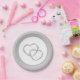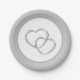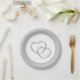 Plaque de papier de fête de mariage en couleur argent autour de la jante avec un design d'impression de deux coeurs au centre. Montré en taille 7". Vendu en paquet de huit. Customisez cet objet ou achetez tel que conçu.