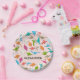Ajoutez le nom d'un garçon ou d'une fille d'anniversaire à des plaques de papier rouge brumeux rose de fête d'anniversaire avec une variété de dinosaures comprenant le Stegosaurus, Brachiosaurus, Tyrannosaurus rex, Tricératops, Raptor et la faune plus préhistorique.