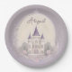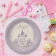 Jolies assiettes de château de conte de fées violet customisées d'un nom.