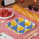 Plaques de papier personnalisées conçues par Regina DeVal. Profitez de ces Triangles et cercles tout en mangeant votre meilleur barbecue!