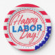 Plaque de papier de 9 pouces avec la bordure du drapeau américain et texte dit Joyeux Fête du Travail. Pour ce barbecue de la Fête du Travail, vous planifiez. Des tasses et serviettes assorties sont disponibles.