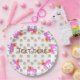 Plaques de papier de fête pour toute fille et fée. belle licorne et délicat arrière - plan de points dorés. Pour la célébration de votre anniversaire et toute occasion spéciale. Facile à ajouter votre propre texte.