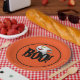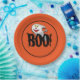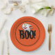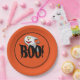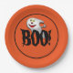 Plaque de papier de fête en orange et avec le mot boo et un mignon fantôme. Customisez cet objet ou achetez tel quel.