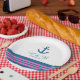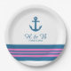 Élégante et classique Plaques en papier Mariage d'Ancres nautiques avec une simple ancre de bateau et un ensemble de rayures en bleu marine foncé et rose. Ces assiettes à thème de plage nautique peuvent être facilement customisées avec vos détails mariages. Pour plus d'options de personnalisation, cliquez sur le bouton Customiser.