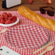 Motif en vichy rouge sur plaques en papier. Idéal pour les baby showers à thème pour animaux de ferme ou les fêtes d'anniversaire.