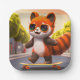 Red Panda monte sa planche à roulettes dans la rue. Portant des teintes cool, profitant de la promenade. Design amusant pour apporter un sourire à votre visage.. idée unique de fête d'anniversaire.