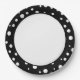 La plaque de papier de fête est présentée dans un design pois noir et blanc. Customisez cet article et modifiez la couleur de l'arrière - plan ou achetez-le tel quel. Montré en 9 po de taille. Vendu en paquet de huit.