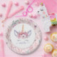 Plate de papier d'anniversaire floral Unicorn amusant aquarelle.