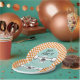 Skateboard Let's Kick It, assiettes de fête d'anniversaire avec chèque orange et skateboard.