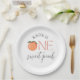 Ces assiettes en papier sur mesure sont destinées à une fête de premier anniversaire "one sweet pêche" !
