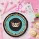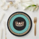 Ces assiettes en papier festives de concours sont parfaites pour servir un peu de plaisir (et facile à nettoyer aussi) pour votre prochain concours se réunir. Ajoutez votre thème de concours ou votre nom de concours si vous le souhaitez. Voici une jante Aqua-Turquoise et une couronne Turquoise brillante au centre sur l'arrière - plan noir chic. Trim régal de couleur or sur la jante. Personnalisez ou achetez comme prévu.