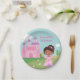 Les plaques à papier de fête d'anniversaire avec un Afro-américain mignon que la princesse qui utilise une robe rose et pourpre a attaché avec un ruban rose et un diadème rose sur elle ont attaché des cheveux. Un oiseau bleu et jaune est près de ses pieds. Arrière - plan de belle correction d'herbe, certains avec des fleurs, certains avec des arbres et un château rose avec le toit pourpre. Grand pour des filles d'anniversaire d'Afro-américain ! Personnalisez avec le message de partie.