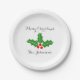 Plats faits sur commande de fête de Noël pour les vacances. Modèle élégant de typographie de calligraphie avec le feuille vert de houx et les baies rouges. Conception élégante pour des dîners et plus. Disponible dans petit et grand de grande taille supplémentaire. Ajoutez vos propre salutations, souhaits et nom ou nom de famille personnalisé de famille. Décor à la maison mignon, décorations et approvisionnements de Noël pour la saison des vacances.