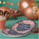 Assiettes en papier personnalisées avec élégant script sur fond de tableau noir bleu nuit foncé pour une douche nuptiale chic et champêtre avec fleurs aquarelles roses et pivoines