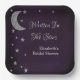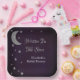 Pluie de mariée écrite dans les étoiles. Lune argentée et étoiles sur un fond violet minuit foncé