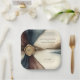 Serve your guests in style with these sophisticated paper plates designed to coordinate with your Plum and Blue Ombre wedding collection. A graceful pairing of mocha and slate-blue silk-like ribbons joins under a shimmering gold wax seal against a textured neutral backdrop. Elegant, romantic, and practical for receptions, showers, or rehearsal dinners.