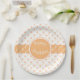 Joyeux anniversaire poach polka motif papier plaque d'événement, personnalisez l'arrière - plan blanc ou la bande de pêche à n'importe quelle couleur pour convenir à votre style d'événement.