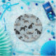 Les chiens Schnauzer mignons en noir, sel et poivre et les manteaux noirs et argent s'assoient, se tiennent et se retournent avec des os de chien éparpillés et des empreintes de pattes sur un arrière - plan bleu clair.
