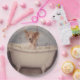 CHIEN POPPY HUMIDE PRENANT UN BAIN