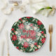 Happy Holidays ou tout message sur ces poinsettias chic, rouge et ivoire, baies et feuilles sur arrière - plan vert foncé, disponibles en 2 assiettes - 7" et 9". CORRESPONDRE des articles dans notre magasin.