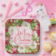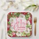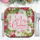 Les grandes plaques en papier carré personnalisées sont ornées de fleurs d'hiver modernes et élégantes et d'un poinsettia rose avec Joyeux Noël et votre nom en lettres chic. CORRESPONDRE des articles dans notre magasin.