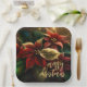 Sur ces plaques en papier carré, on retrouve un design élégant de poinsettias et de feuille rouges et dorés de Noël. CORRESPONDANCE d'objets dans notre collection.