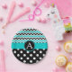 Conception de monogramme avec la turquoise, le motif noir et blanc de chevron et le pois noir et blanc. Le cadre Resizable de cercle pour initial fait sur commande ou l'enlèvent complètement et ajoutent le texte à la rayure de turquoise ! Original de PinkInkArt !