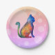 Chat d'aquarelle cosmique. Design à points roses. Conception amusante et originale de plaque de papier pour la fête.