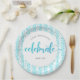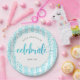 "Fêtez." Soyez fier, réjouissez-vous et présentez cette étape de votre carrière préférée ! Célébrez avec ce magnifique, moderne, brillant point de parties scintillant turquoise et script de typographie contre un bébé arrière - plan rayé bleu turquoise et blanc, plaque de papier pour un événement à retenir. Personnalisez le texte personnalisé avec le nom et l’année de classe de votre diplômée. Votre choix de 2 tailles : 7" ou 9". Garanti d'ajouter du plaisir élégant à sa fête spéciale! Invitations, serviettes et autres cadeaux de fin d'études sont également disponibles dans cette collection tendance et spéciale. Il suffit de taper le nom et l’année de classe de votre élève et vous pouvez facilement personnaliser cette plaque en papier. S'il vous plaît, envoyez-moi un message avec toute question ou demande.