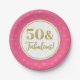50 et fabuleuses assiettes de fête d'anniversaire en motif pois rose chaud et or.