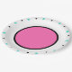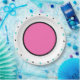 Centre rose vif cerné en cercle noir. Arrière - plan blanc avec pois géométriques bleu turquoise et dos. Conception originale © TamiraZDesigns.