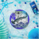 Ce collage nautique présente un requin marteau, des anémones de mer et une boussole sur un arrière - plan bleu marine. Designs Lark