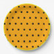 Arrière - plan orange avec pois géométriques noirs. Bordure circulaire couleur jaune. Motif amusant pour l'automne ou à tout moment. Conception originale © TamiraZDesigns.