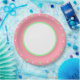 Des pois verts et blancs à la menthe ornent le rose doux à l'extérieur de la frontière. Le centre a un cercle vert avec blanc. Motif géométrique amusant pour le printemps ou l'été. Oeuvre originale © TamiraZDesigns.