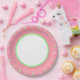 Assiettes En Carton Pois verts à la menthe rose