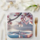 Les fleurs de cerisiers pendent délicatement sur un plan d'eau, où une gouttelette unique crée des ondulations, capturant la beauté tranquille de la nature