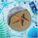Photographie de plage frappante, une étoile de mer orange vif au bord de l'eau sur le point d'être recouverte d'une douce vague.